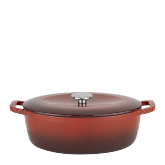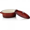 Чугунена тенджера с висококачествено емайлирано покритие , подходяща за всякакъв тип котлони .